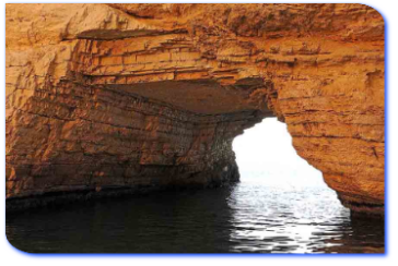 Poco piu' avani, la Grotta Sfondata Grande, due ingressi laterali introducono ad un corridoio che conduce in una grotta sfondata, sull'orlo esterno un gruppo di pini; sul fondo una lunga spiaggia dorata ed una piscina naturale meravigliosamente limpida.